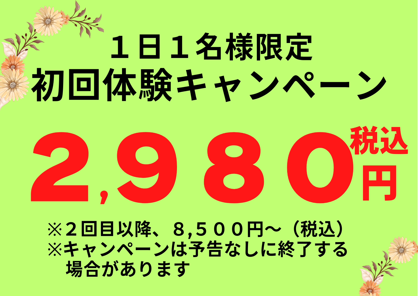 当整体院ではそのような不安を持った患者さんに対し、納得して通院してもらいたいと考えているため、まずは初回2,980円という価格で気軽に治療を受けてもらうことにしました。