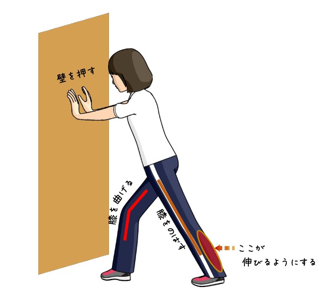 2,アキレス腱を伸ばす要領で、ふくらはぎを伸ばします