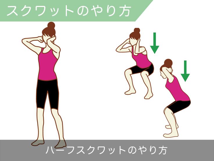 2,膝はつま先より前に出過ぎないよう注意し、太ももが地面と平行になるまでゆっくり下げましょう。